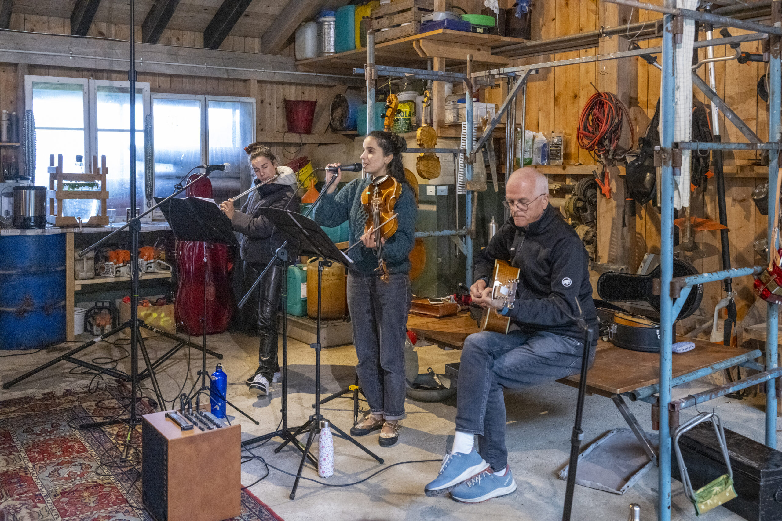 Né d’une rencontre entre générations, REVIRA fait chanter le patois. Quatre musiciennes et musiciens redonnent vie aux airs populaires d’autrefois — ceux que l’on fredonnait dans les vallées, entre la fin du XIXe et le début du XXe siècle. Porté par la mémoire de Tétralyre, groupe emblématique des années 70, REVIRA tisse un pont entre hier et aujourd’hui, dans une musique vivante, acoustique et pleine d’âme.